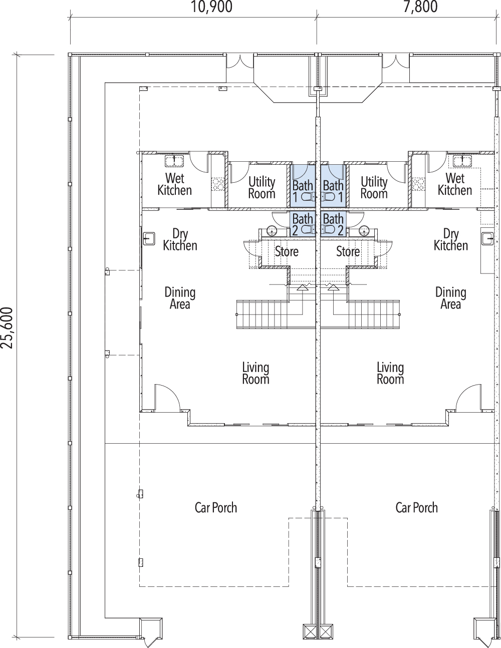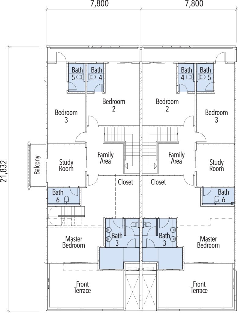 Intermediate units: 2,166 sq ft land area, 2,384 sq ft built-up area
